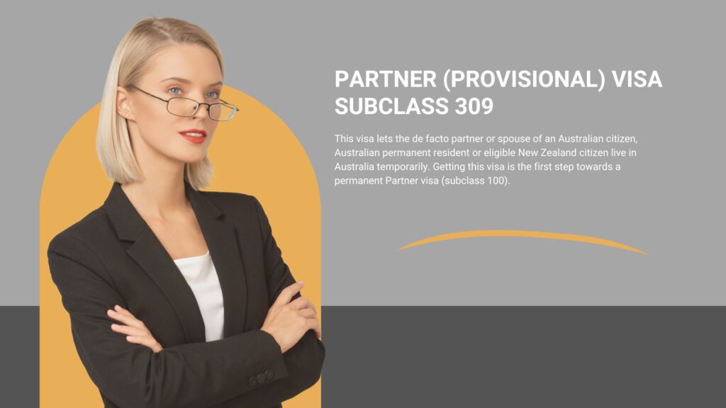 temporary offshore partner visa that allows the spouse or de-facto partner of an Australian citizen, permanent resident, or eligible New Zealand citizen to enter and live in Australia while they transition to permanent residency under Subclass 100.